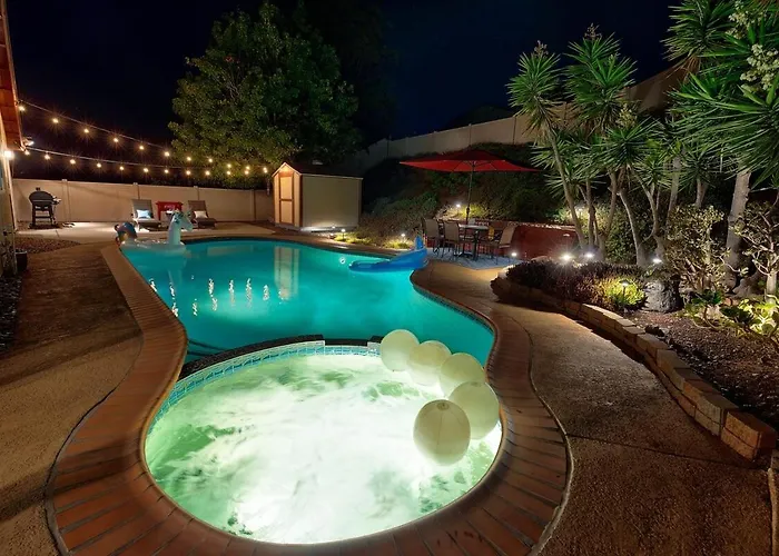 2 yatak odalı San Diego 4-Bedroom Home With Pool And Jacuzzi, Pioneer Park'dan yürüyerek 25 dakikadan kısa bir mesafededir. Özel yüzme havuzlu villa ayrıca bahçe manzaralıdır.